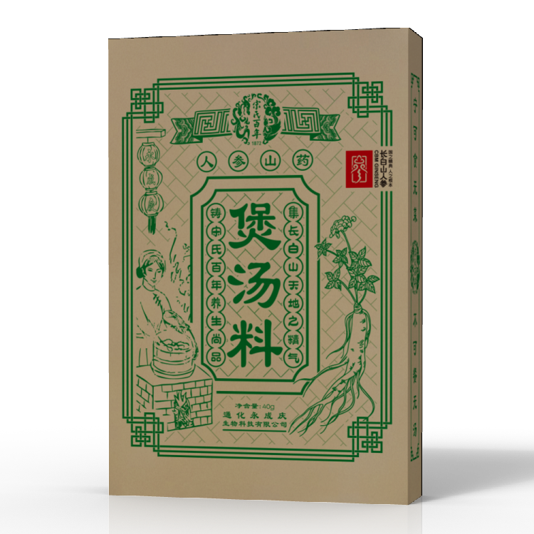 本款煲湯料精選人參、山藥、枸杞子、甘草、大棗、龍眼肉、銀耳、等多味優(yōu)質(zhì)藥食同源的中草藥加工而成。